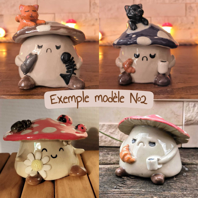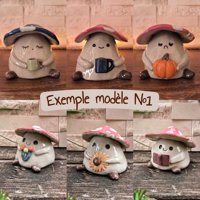 Chaque champignon est façonné et peint à la main, spécialement pour vous, et mesure entre 8 et 10 cm de haut pour environ 8cm de diamètre.