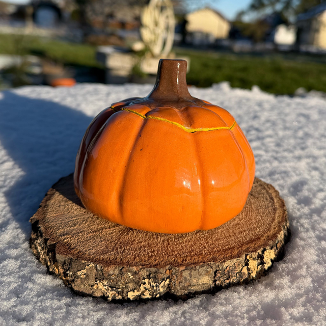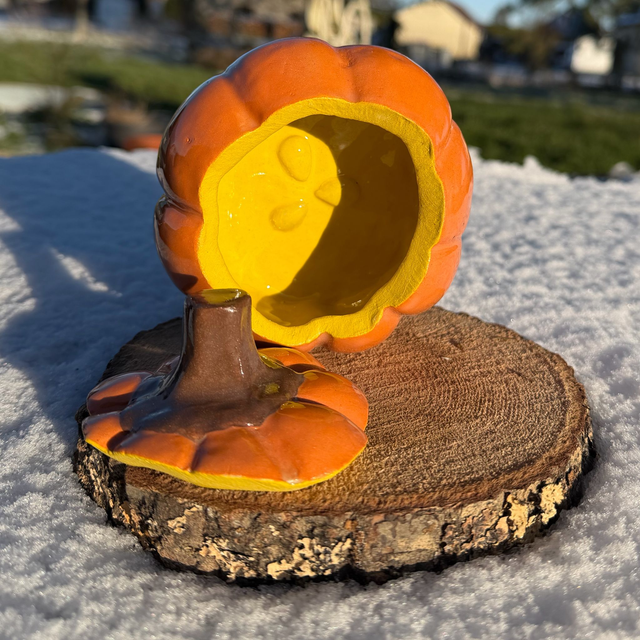 Cette pièce unique a été entièrement réalisée à la main dans mon atelier en Normandie, du modelage à l’émaillage, en passant par la mise en couleur.
